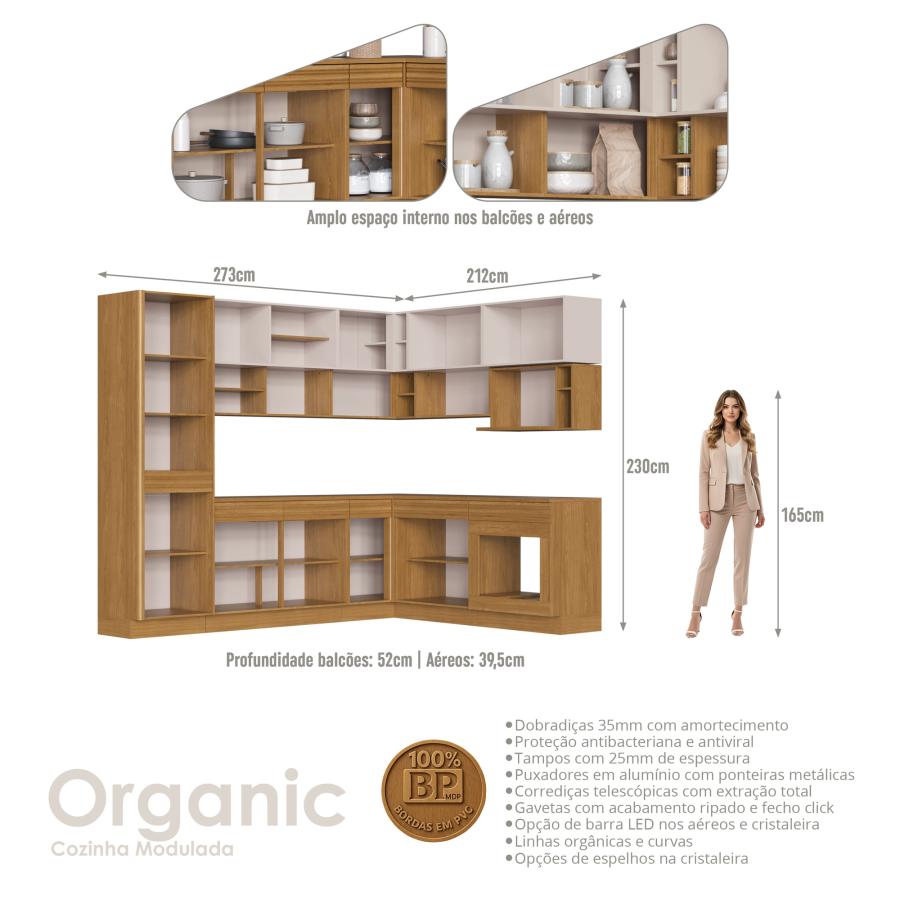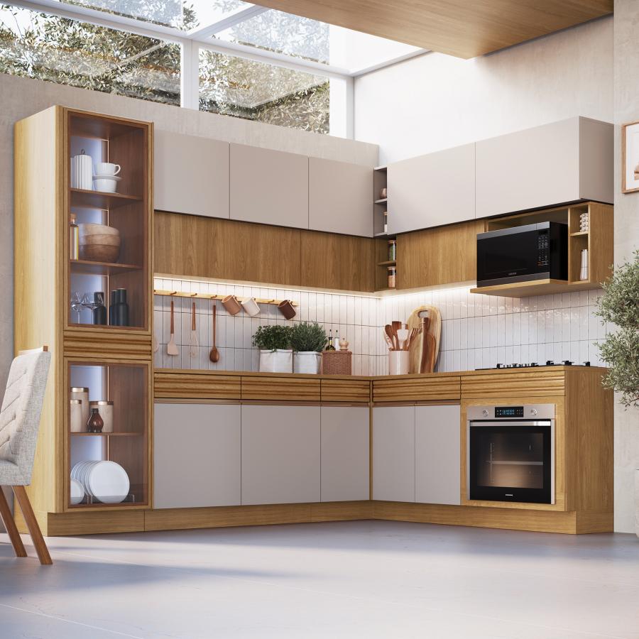 Cozinha Modulada Organic - OR0110R - Cristaleira NATURE / SAND