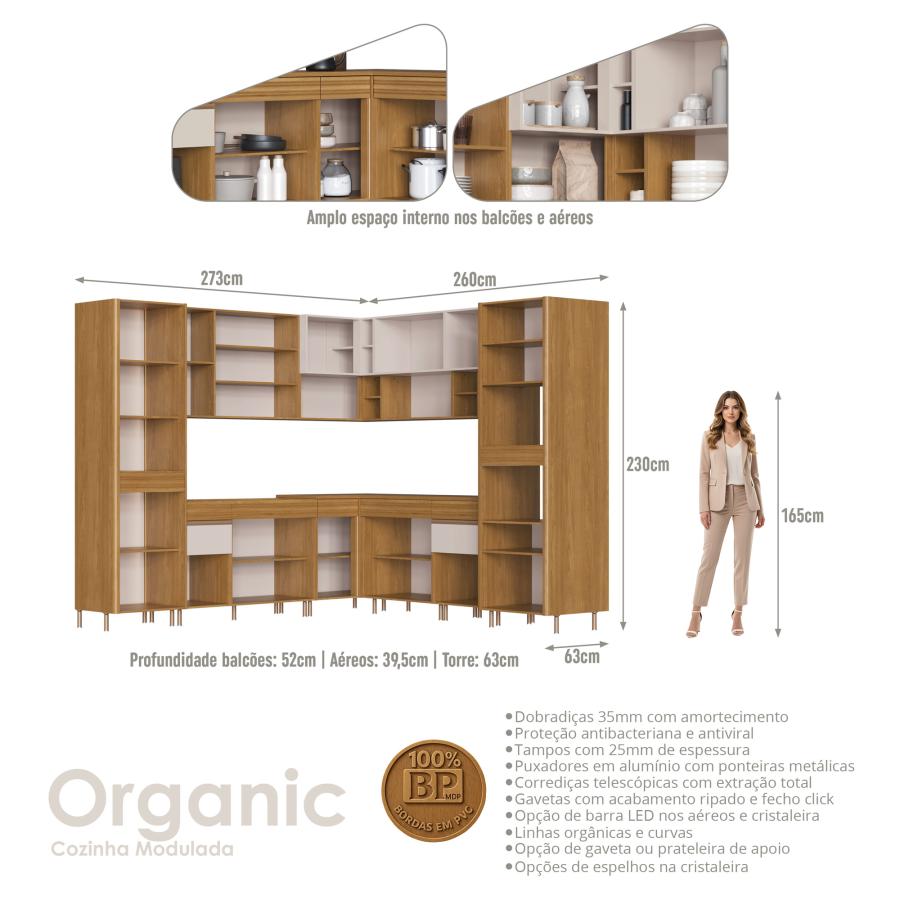 OR3401R - COZ MOD ORGANIC 100%BP BALCAO 0,80M 2P 1GAV