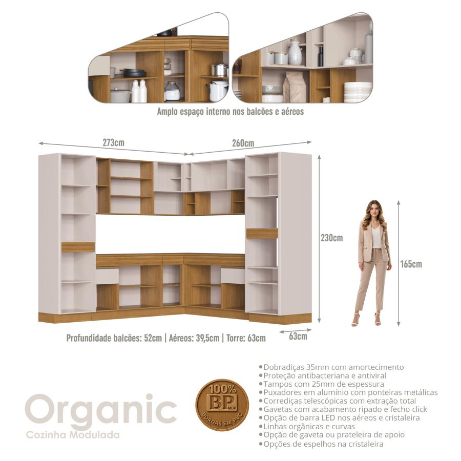 Cozinha Modulada Organic - OR0120R - Cristaleira SAND