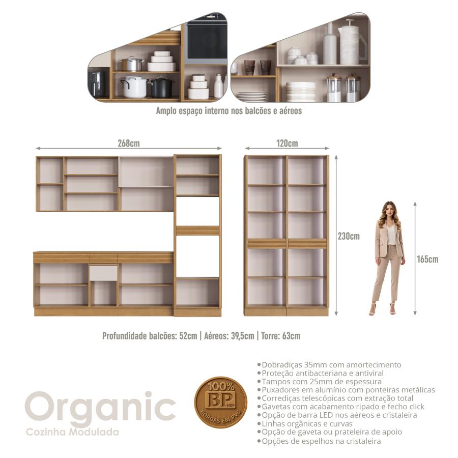 Cozinha Modulada Organic - OR0130R - Cristaleira NATURE / SAND