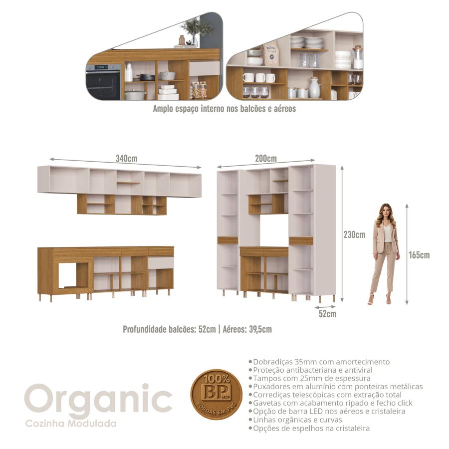 Cozinha Modulada Organic - OR0140P - Cristaleira SAND