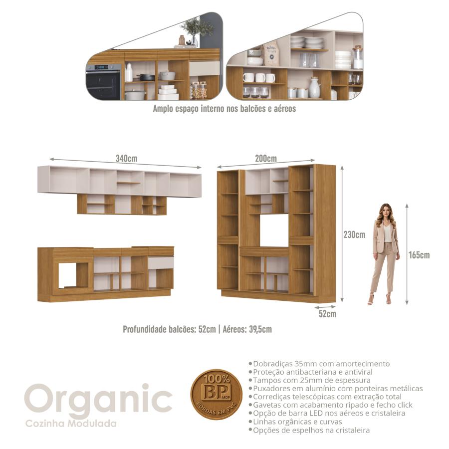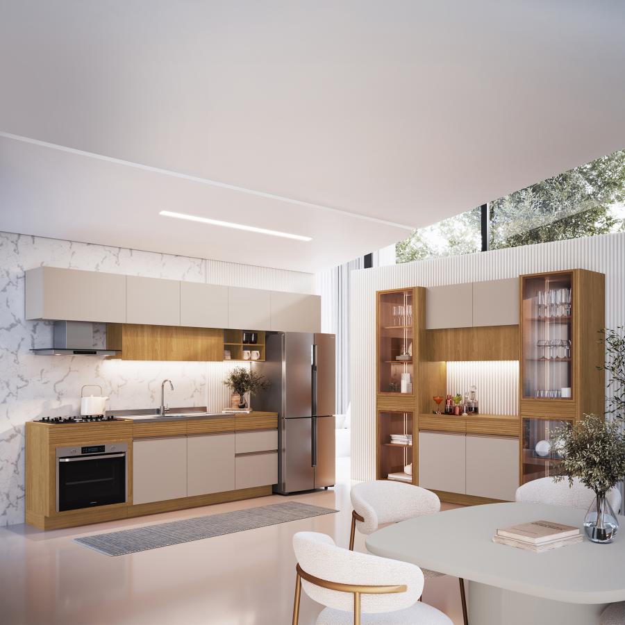 Cozinha Modulada Organic - OR0140R - Cristaleira NATURE / SAND